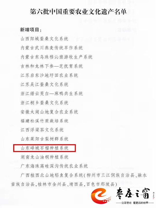 重磅!嶧城石榴種植系統(tǒng)入選第六批中國重要農業(yè)文化遺產名單