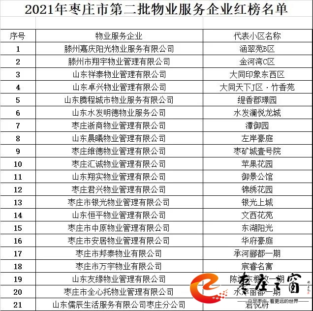 棗莊發(fā)布2021年第二批物業(yè)公司紅黑榜