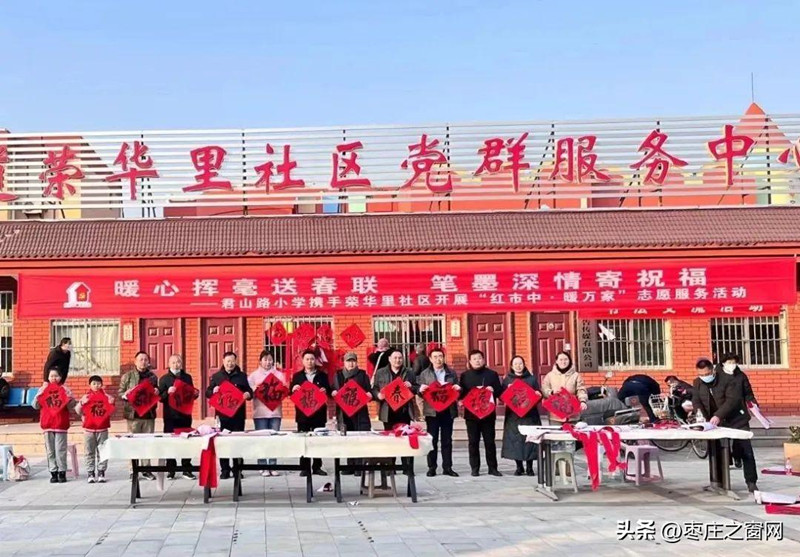 1月11日下午,接到區(qū)融媒體中心的電話,《棗莊之窗》小編驅(qū)車來(lái)到榮華里社區(qū),感受這里不一樣的年味氣氛。來(lái)到社區(qū)大院,看到書法愛好者、社區(qū)紅馬甲、學(xué)生們,還有周邊的社區(qū)居民早早來(lái)到大院忙乎了起來(lái),你搬案桌,我裁紙,他研墨水,準(zhǔn)備著一場(chǎng)書寫春聯(lián)的筆墨盛會(huì)。